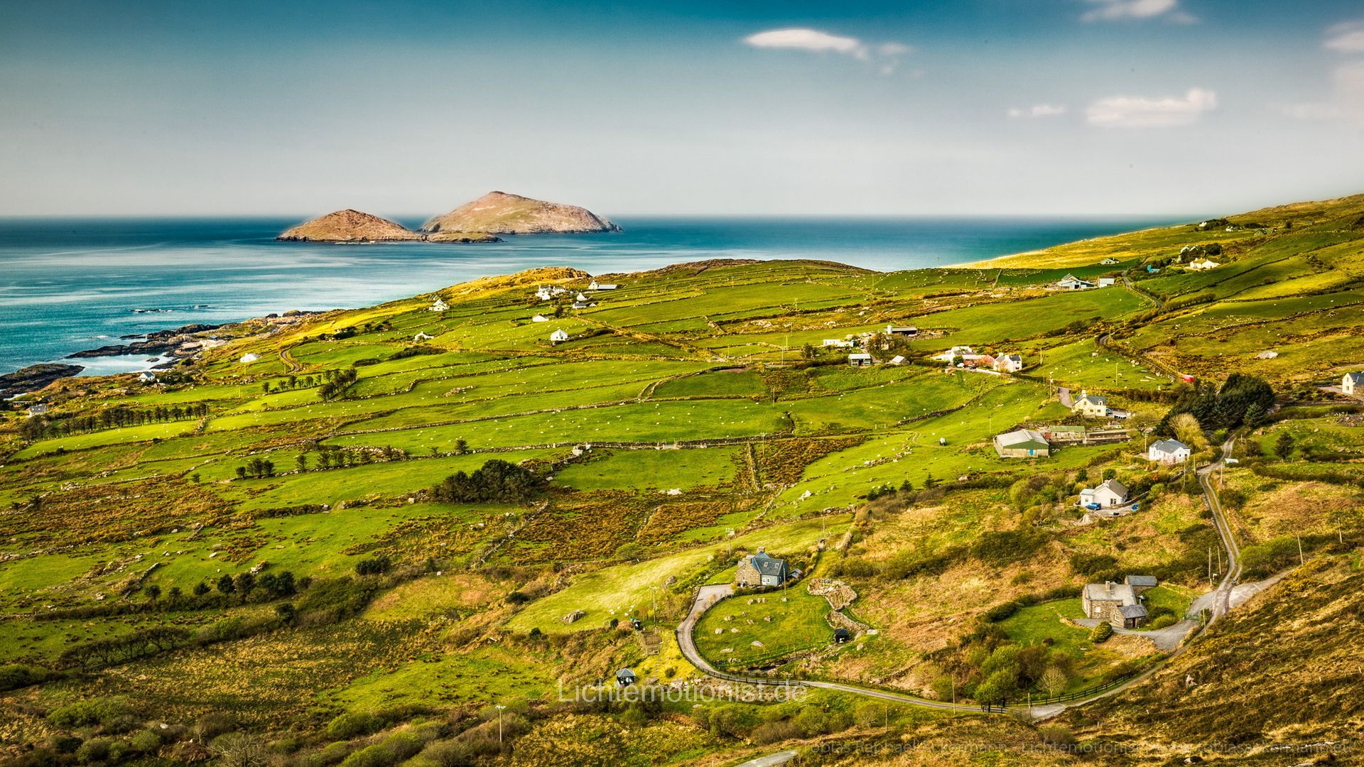 Der Ring of Skellig ist eine einzigartige Panoramastraße und führt an der Küste entlang, durch Berge und Dörfer. An Tag 3 meiner Irlandreise regnete es mal nicht und ich konnte die Aussichten unter strahlend blauem Himmel bewundern. Im Gegensatz zum Ring of Kelly ist er eher unberührt. Durch die engen Straßen und Kurven verirren sich hier auf jeden Fall keine Reisebusse hin und wenn du eher Lust hast, eine einzigartige Landschaft allein zu genießen, machst du mit diesem Weg auf jeden Fall nichts falsch. Die zwei einsamen Inseln im zweiten Bild könnten Star Wars Fans bekannt sein!