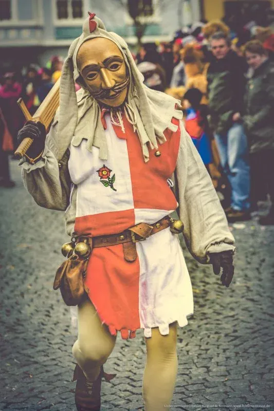 Auf der Straße umherspringende, wirbelnde Hexen, düstere Gestalten, die direkt vor deiner Nase verharren und dir deine Haare verwuscheln oder Konfetti in deinen Kragen schütten. Im Gleichschritt vorbeiziehende Trompeten, Posaunen, Trommeln und Flöten. Bunte und reich verzierte Kostüme mit stolzem Schritt, und ich dazwischen.