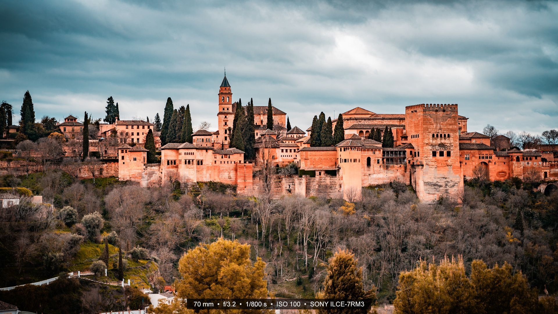 Fototipp: Der Blick vom Mirador de San Nicolás auf die Alhambra und Granada ist legendär, aber oft auch überlaufen. Wer den Blick auf die Festung in Ruhe genießen möchte, sollte sich früh am Morgen oder zur blauen Stunde auf den Weg machen. Ein Teleobjektiv (z.B. 70mm) bringt die Alhambra näher heran und lässt Details in der Fassade sichtbar werden.