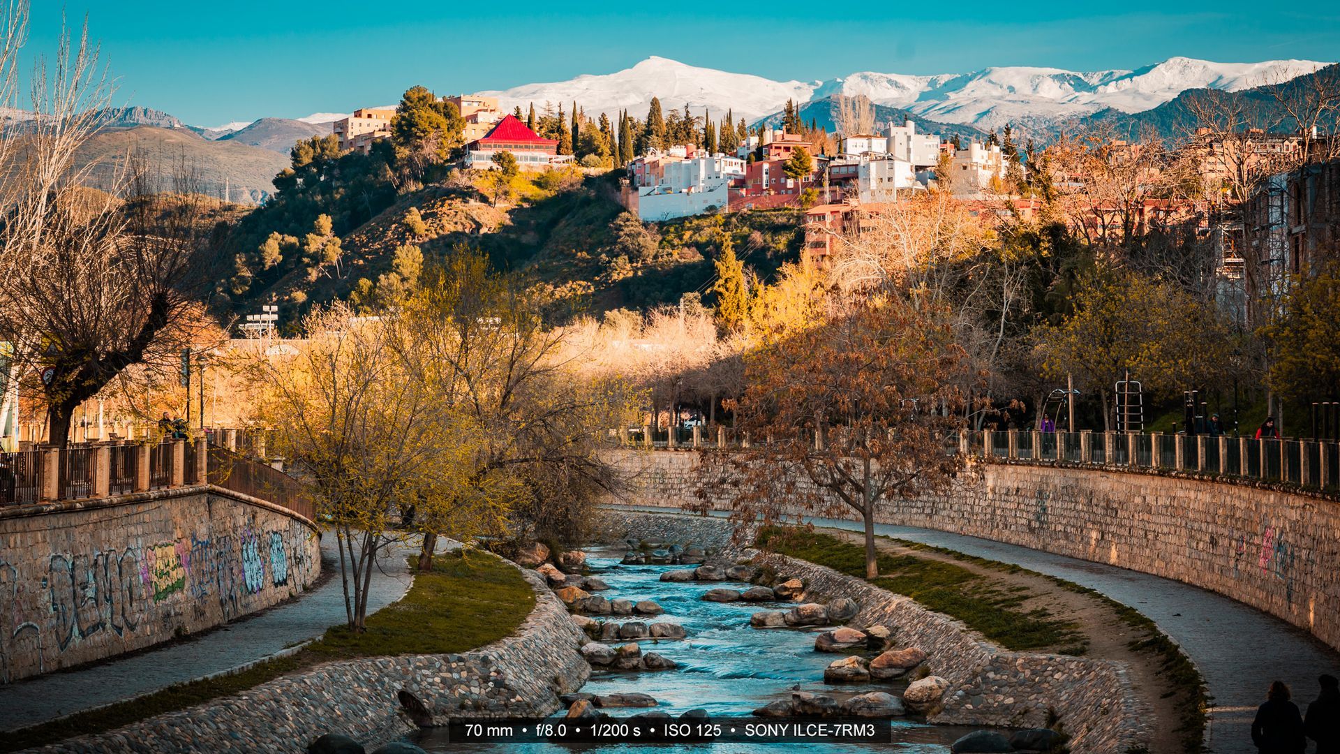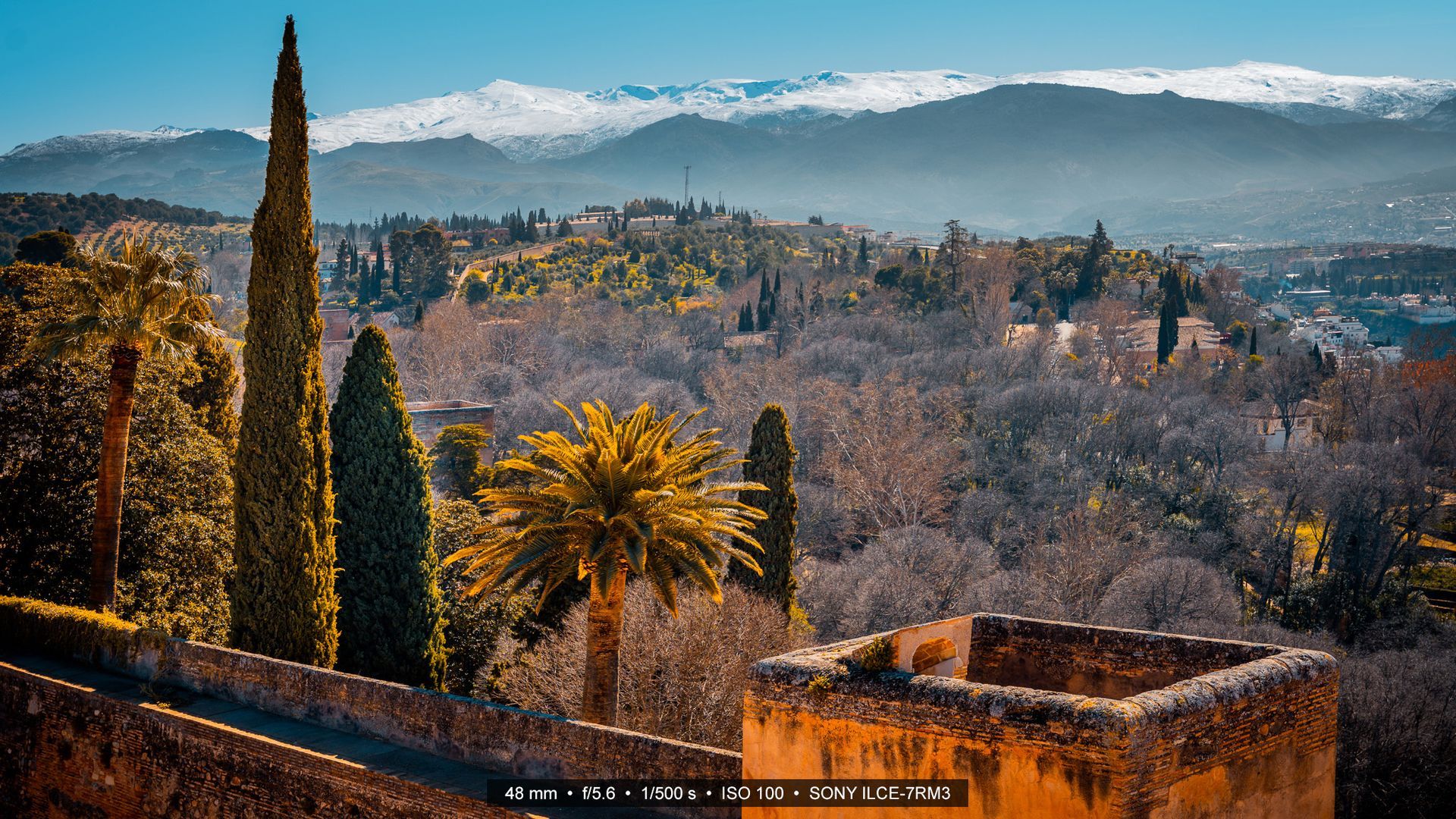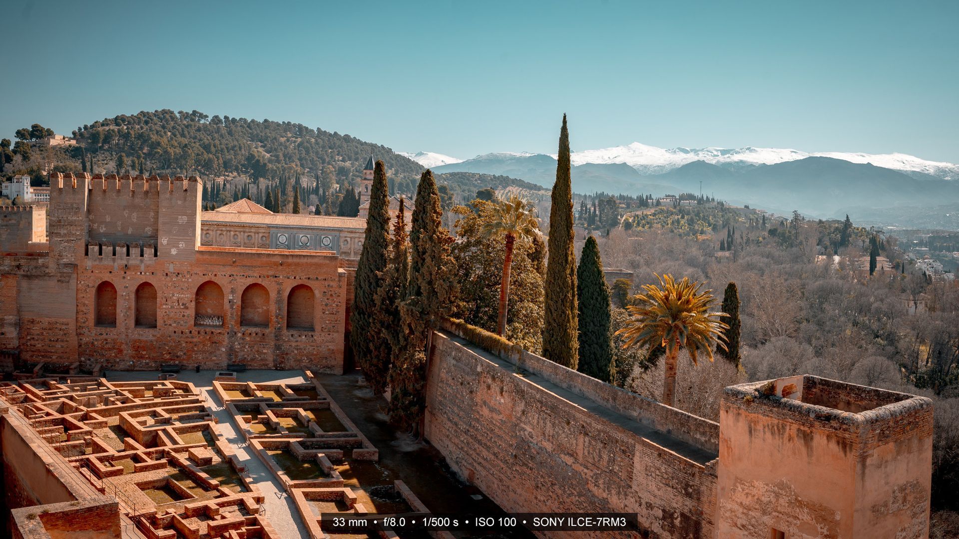 Was Granada so besonders macht, ist nicht nur die Geschichte, die in ihren Mauern steckt, sondern auch die Landschaft, die sie umgibt. Besonders eindrucksvoll erhebt sich im Hintergrund die Sierra Nevada, ein mächtiges Gebirge, das im März oft noch tief verschneit ist und mit seinen Kontrasten das Stadtbild prägt.
