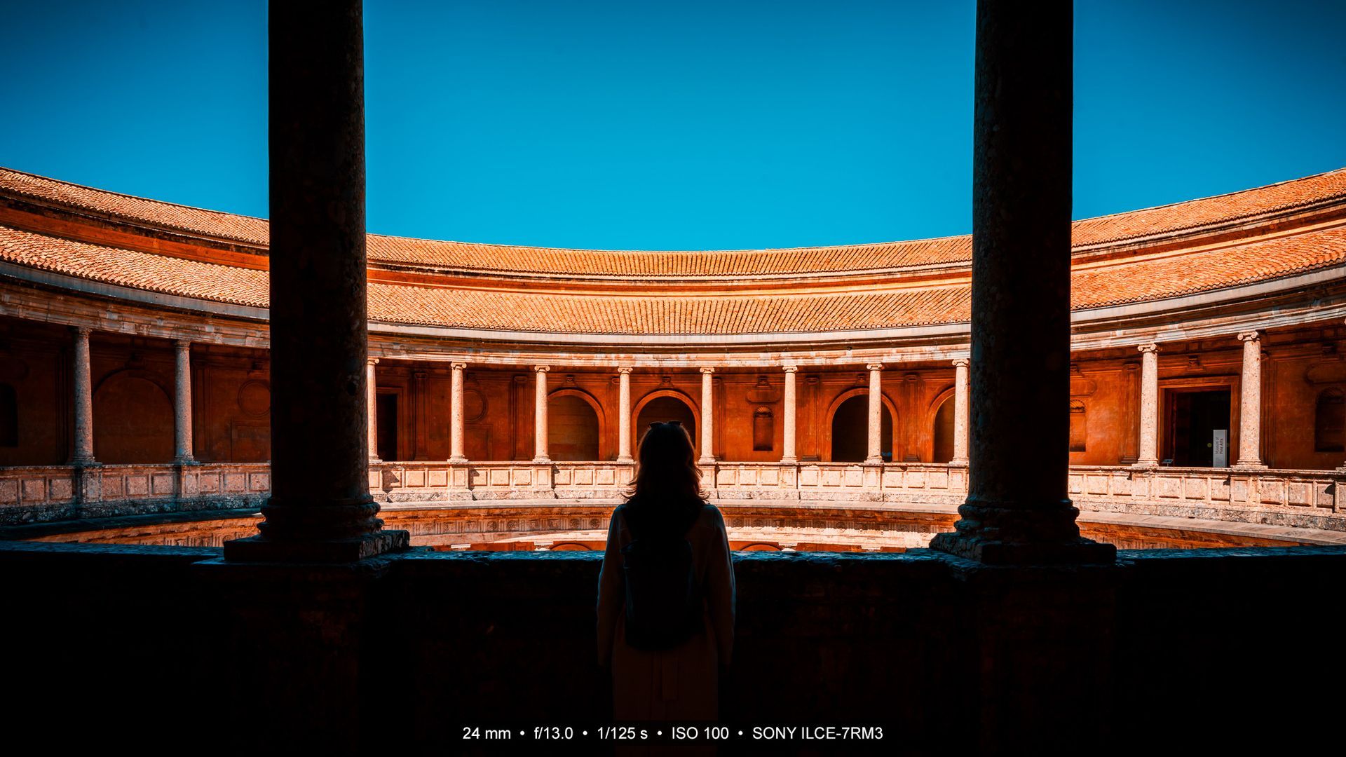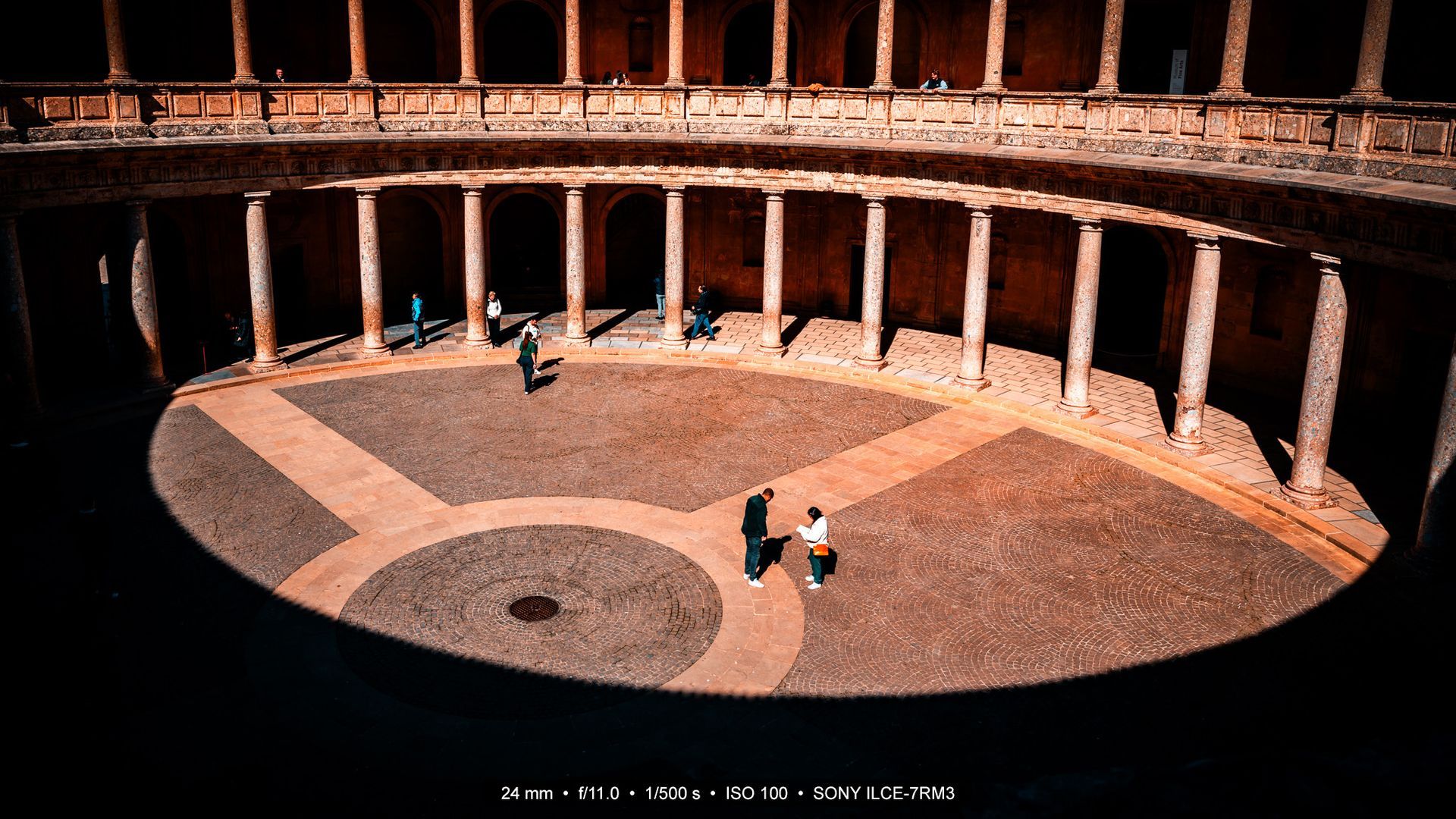Ein weiteres Gebäude innerhalb der Alhambra ist der Palast Karls V. (Palacio de Carlos V). Ein wuchtiger Renaissancebau mitten im maurischen Ensemble, errichtet im 16. Jahrhundert im Auftrag von Kaiser Karl V., der sich ein repräsentatives Zeichen seiner Macht in Granada wünschte. Der Palast überrascht allerdings, denn spätestens wenn man den runden Innenhof betritt, steht man inmitten perfekt proportionierten Säulen, die sich über zwei Geschosse strecken. Das ganze Gebilde sieht durch die Licht- und Schattenspiele, durch die Architektur fast aus wie eine Bühne. Jeder Schritt hallt, jede Stimme, selbst wenn man alleine ist.