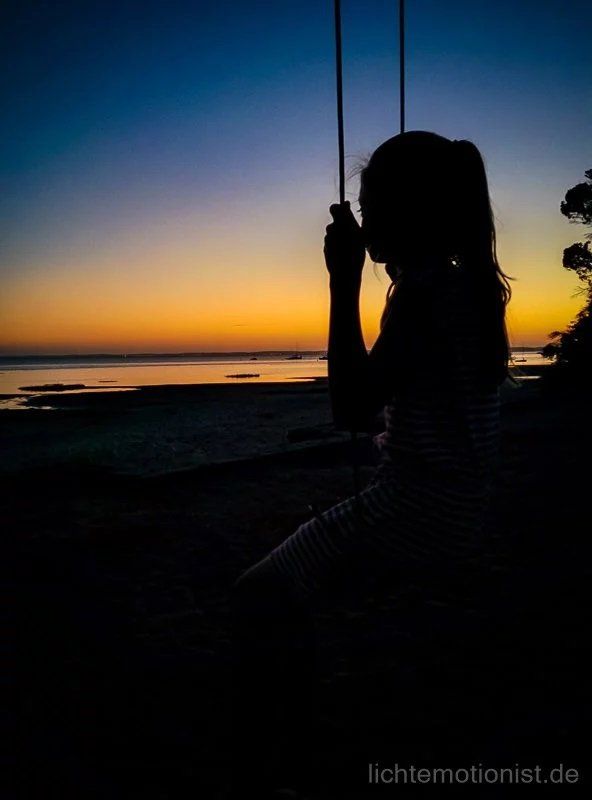 Ich ärgere mich, weil ich die Kamera im Hotel gelassen habe und wir jetzt auch noch einen super Sonnenuntergang haben und mit der kommenden Flut ein Lichtspiel kreiert, das für einen Lichtemotionisten wie geschaffen ist. Wenigstens habe ich mein Smartphone dabei. Auf dem Rückweg zum Apartment werden wir von ein paar bunten Lichter angezogen und entdecken einen sehr kleinen Rummelplatz, eher ein Rummelplätzchen, mit einem Karussell, ein paar Boxautos und einem Süßigkeitenwagen, jetzt in der blauen Stunden sind das super Fotomotive. Morgen werde ich alles nachholen und mit meiner Fotoausrüstung losziehen.