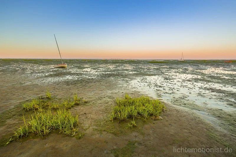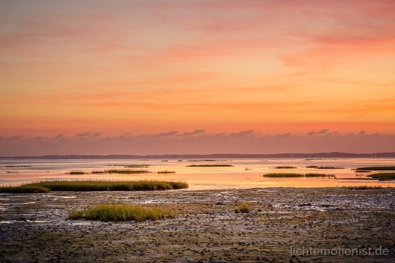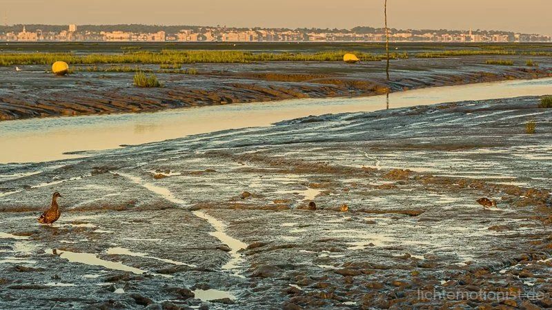 Die Lichtstimmung ist wieder sensationell und ich kann ein paar coole Bilder machen. Auch eine Entenfamilie sehe ich heute Morgen, die im Watt nach Futter suchen.