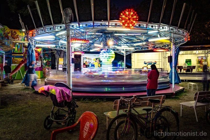 Danach gehen wir Abendessen. Für ein paar Nachtaufnahmen ziehe ich nochmal los, ich möchte zum Rummelplätzchen, mal sehen was für Motive sich ergeben.