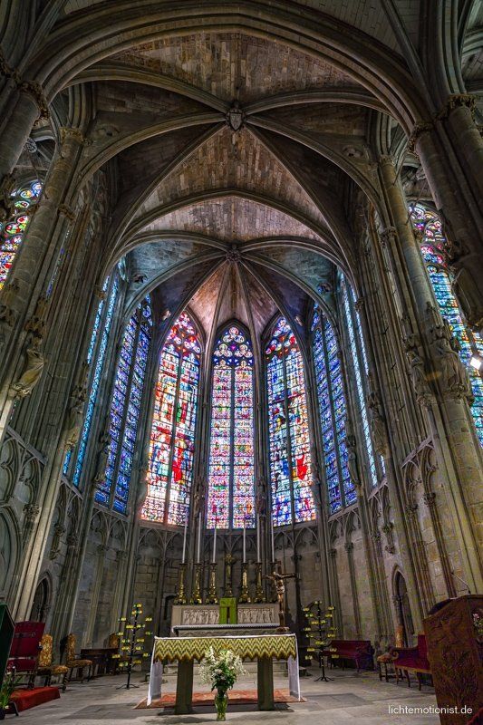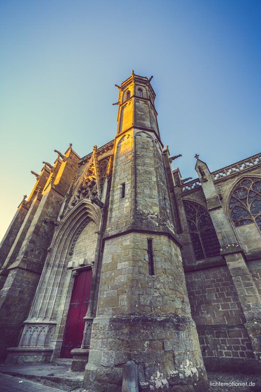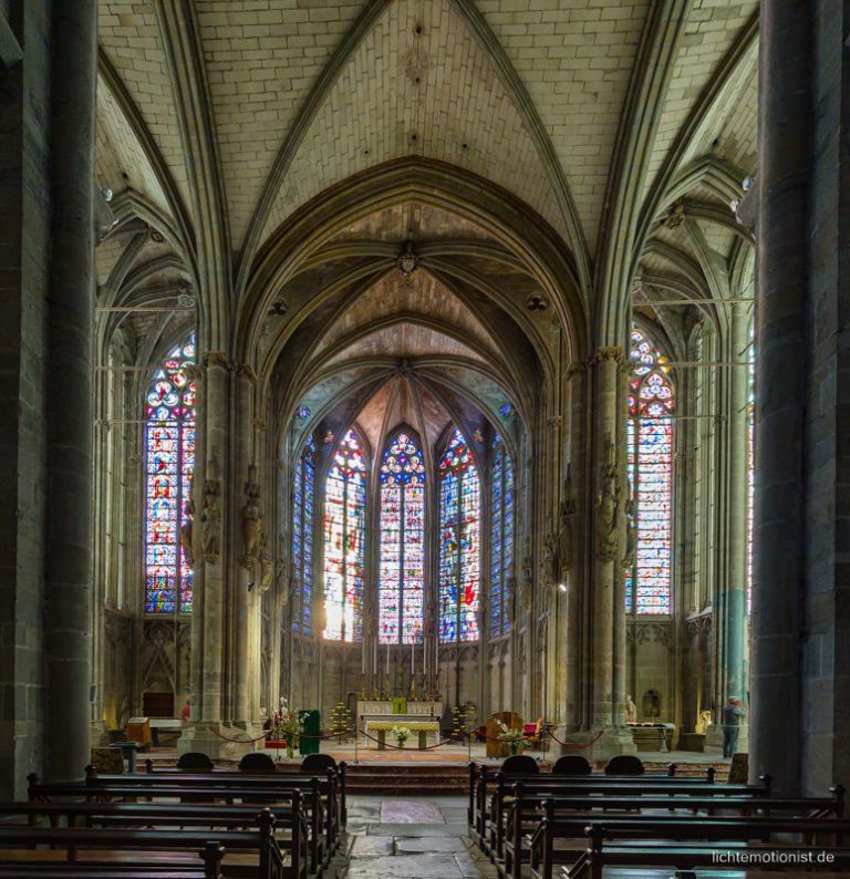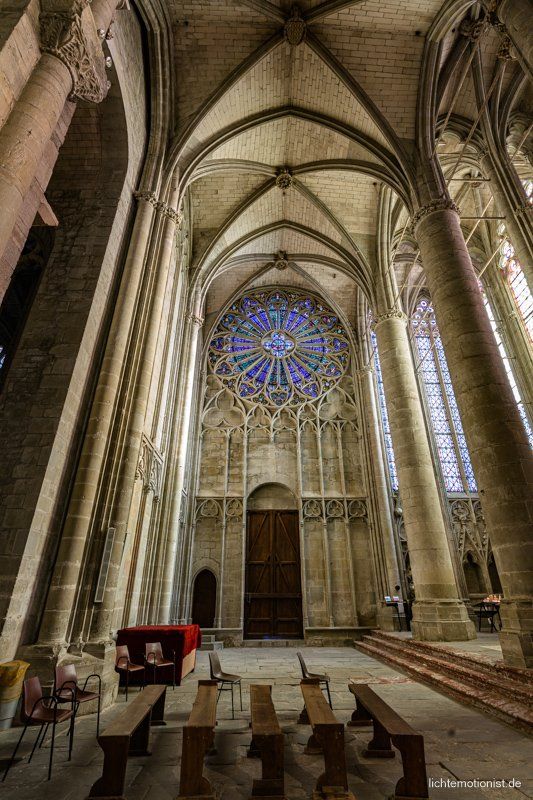 Hier hat es auch noch einen wunscherschönen Kirchenbau die “Basilika St-Nazaire-St-Celse”. Die Lichtstimmung in der Kirche ist außergewöhnlich faszinierend. Die Tonwerte sind eine Herausforderung, um diese etwas in den Griff zu bekommen arbeite ich mit Reihenbelichtungen. Damit kann ich dann in der Bildentwicklung das Maximale aus dem Bildmaterial holen.