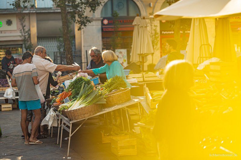 Es dämmert und die Belichtungszeiten werden länger, man sieht das an den Menschen, die teilweise verwischt dargestellt werden, wenn sie sich bewegen. Deshalb kommt jetzt auch mein Stativ zum Einsatz, damit alles was steht scharf abgebildet wird.