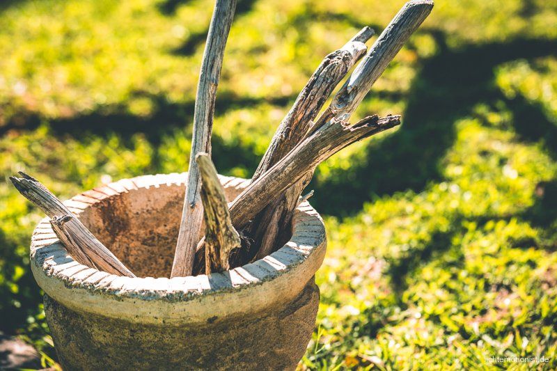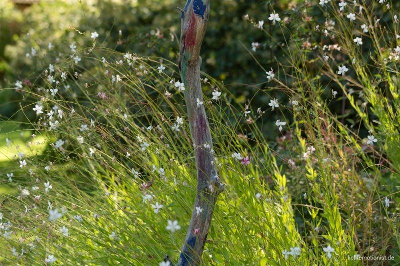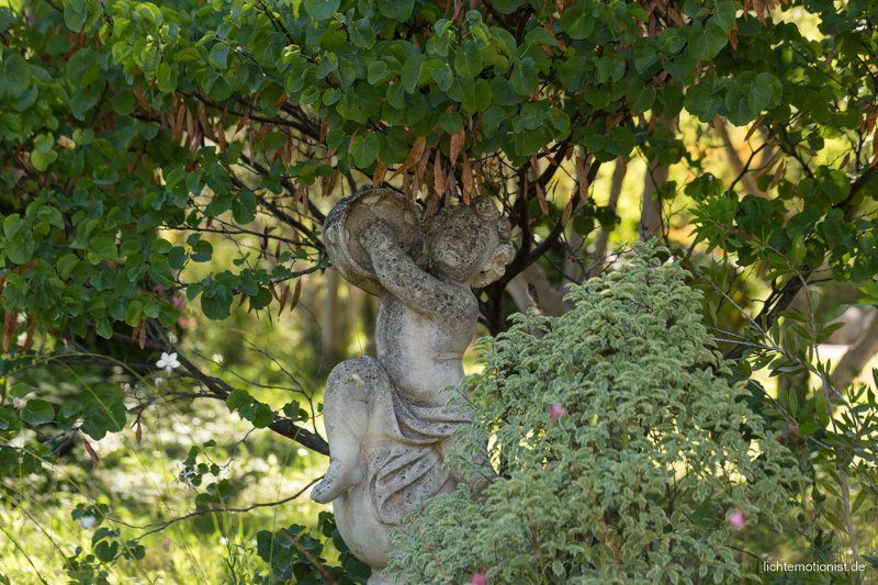 Ich schaue mir danach erstmal den Garten richtig an. Überall hängen Glaskugel-Girlanden in den Büschen und Bäumen, oder irgendwelcher anderer Gartenschmuck, allerdings gerade so viel, dass es noch sehr schön aussieht. Ute hat sich gleich in den Garten verliebt 😉