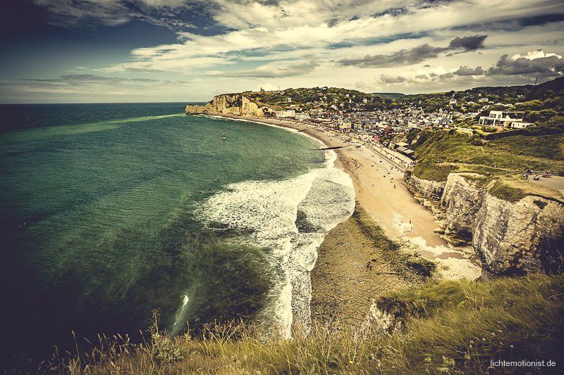 Der Ort Étretat war bis Mitte des 19. Jahrhunderts ein sehr ruhiges Fischerdörfchen, bis eine Gruppe Künstler ihn entdeckt hat und damit immer mehr Menschen kamen, um es zu Filmen, zu Fotografieren und zu Malen.