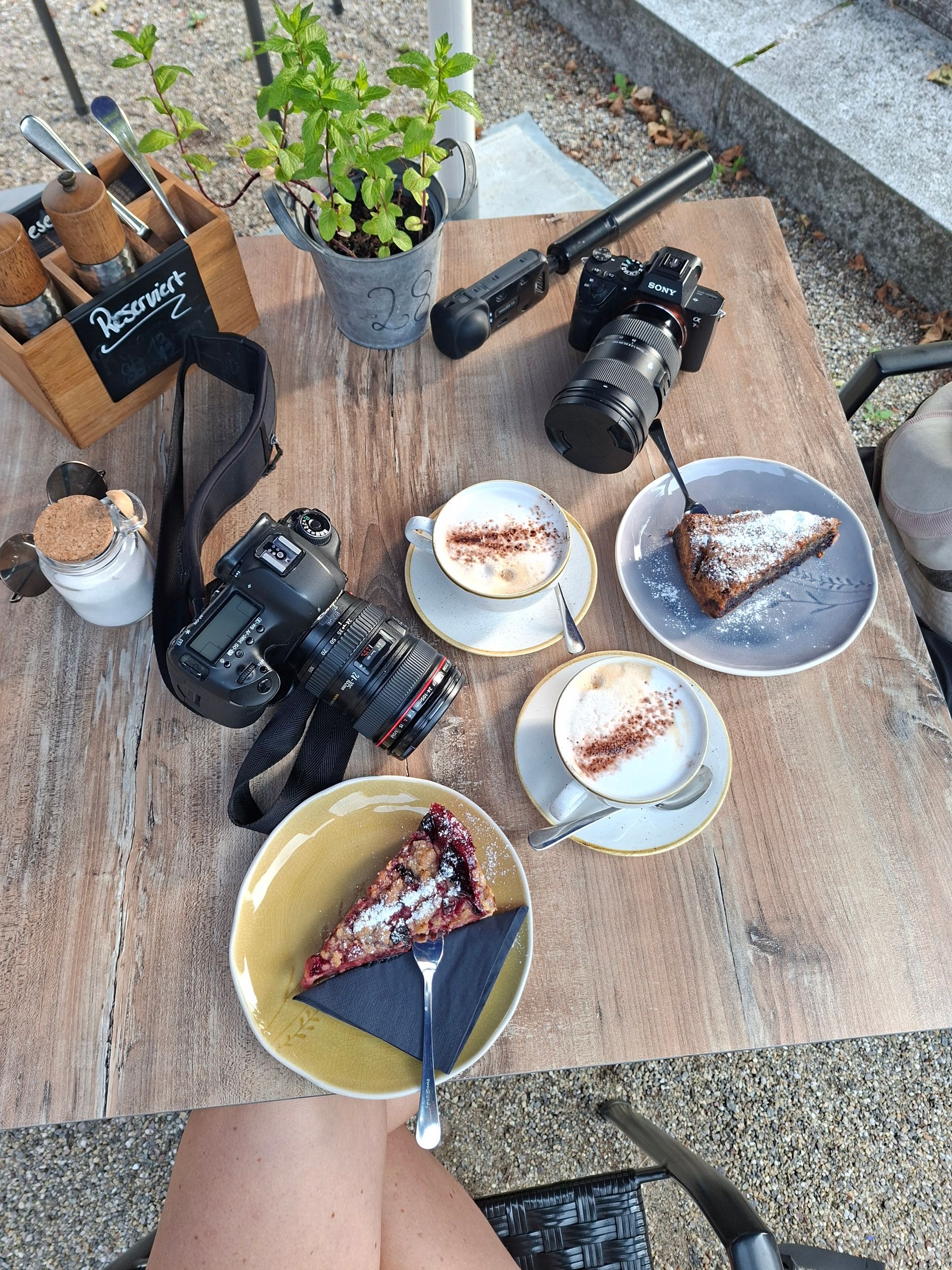Zurück in St. Märgen, der Nachmittag war schon vorbei und anstatt den von Komoot angezeigten vier Stunden hatten wir sechs Stunden gebraucht, setzten wir uns in das Café, das wir uns ganz am Anfang schon ausgeguckt hatten.