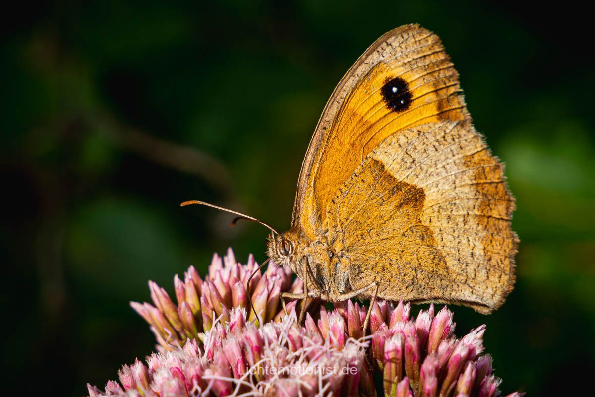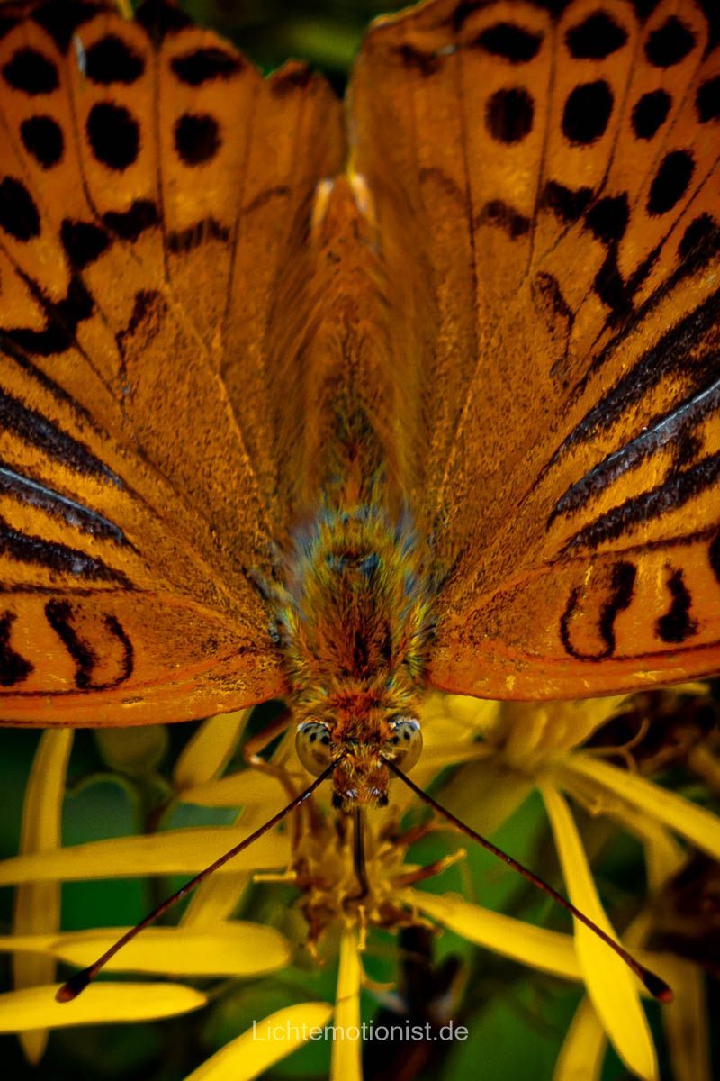 Beide Schmetterlinge sind mit dem gleichen Objektiv aufgenommen – meinem Sigma 24–70 mm. Der Unterschied liegt nur im Blickwinkel. Beim ersten Bild seitlich, beim zweiten frontal von oben. Und genau das zeigt, wie stark sich durch kleine Änderungen in der Position Wirkung und Stimmung verändern. Manchmal genügt ein Schritt zur Seite, um ein völlig neues Bild zu entdecken.