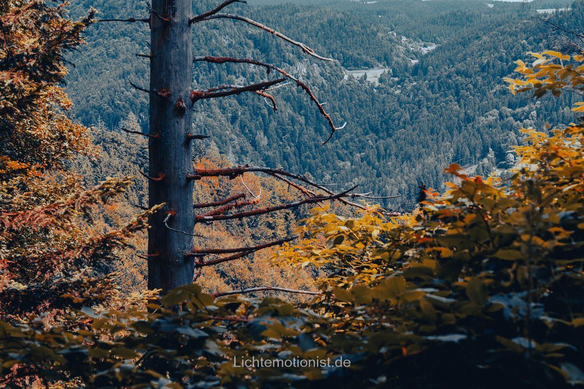 Viele versuchen, stürzende Linien zu vermeiden – ich nutze sie gern bewusst. Gerade im Wald erzeugen sie Dynamik und verstärken das Gefühl von Steigung oder Höhe. Hier wirken die Bäume, als würden sie sich am Hang festhalten – das bringt Bewegung ins Bild und macht die Szene lebendiger.