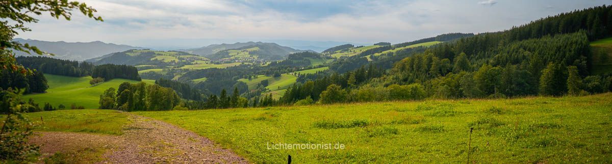 Wir sind spätvormittags in St. Märgen angekommen, haben das Auto auf dem Wanderparkplatz abgestellt und sind gemütlich durch den Ort getrottet. Vorbei am Klostermuseum St. Märgen und einem kleinen Café, das sofort das Gefühl des “Hier müssen wir später nochmal hin” auslöste. Am Rathaus ging es noch schnell auf die Toilette, Rucksäcke wurden sortiert, Kameras gecheckt und dann … der Klassiker: “Mein Hut liegt noch im Auto.” Ich also zurück. Zehn Minuten flotter Schritt, Hut geschnappt und zurück gejoggt, Puls oben. Wieder angekommen bei Alicia und der Fotoausrüstung das Nächste: “Äh mein Handy ist irgendwo auf dem Weg aus meiner Hosentasche gefallen.” Also zu zweit den Weg abgelaufen, den ich gerade gejoggt war. Während ich meiner anderen Tochter am Telefon von meinem Pech erzählte und sie fragte, ob sie das Handy von meinem Computer aus orten könne, um den Signalton abspielen zu lassen, um es leichter zu finden. Doch in dem Moment bückt sich Alicia, hebt was von der Wiese, die ich als Abkürzung genutzt hatte, auf und grinst: “Hab’s!” und gleichzeitig ging der von Amelie eingeschaltete Signalton los. Wir mussten lachen und ab dann war klar, dass die Fotowanderung nun wirklich losgehen kann.