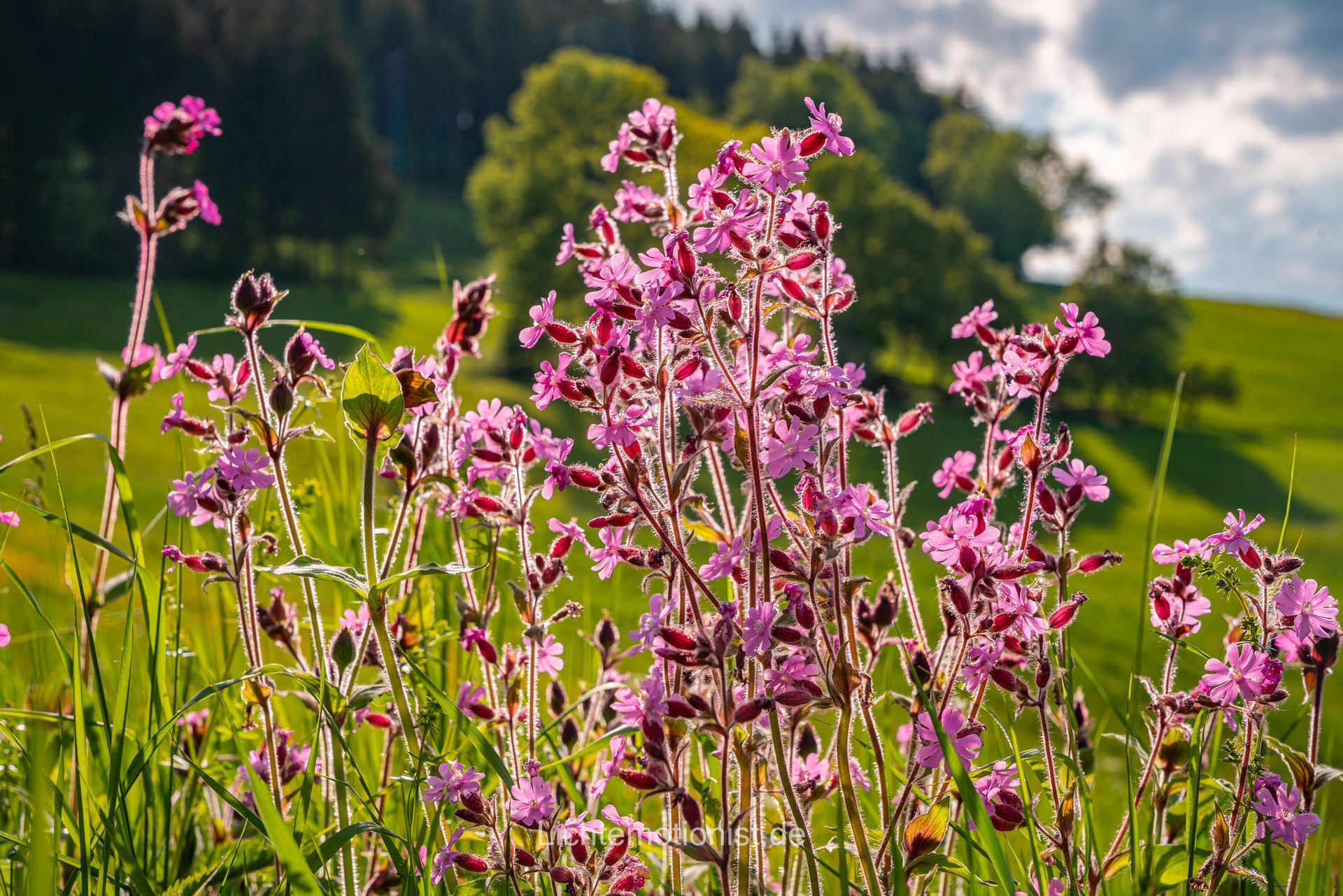 Rote Lichtnelke (Silene dioica): ist eine heimisches Nelkengewächs, dessen auffällige Blüten vor allem Hummeln und langrüsselige Nachtfalter anlockt und reichlich Nektar bietet. Die Samen werden später im Jahr von einigen Singvögeln als Nahrung genutzt. Durch ihr flaches, verzweigtes Wurzelsystem stabilisiert die Pflanze feuchte, nährstoffreiche Böschungen und Bachränder, während der dichte Bewuchs Bodenverschlämmung vorbeugt. Sie reagiert schnell empfindlich gegenüber Dünger und ihr Vorkommen gilt daher als Indikator für naturnahe und artenreiche Lebensräume.