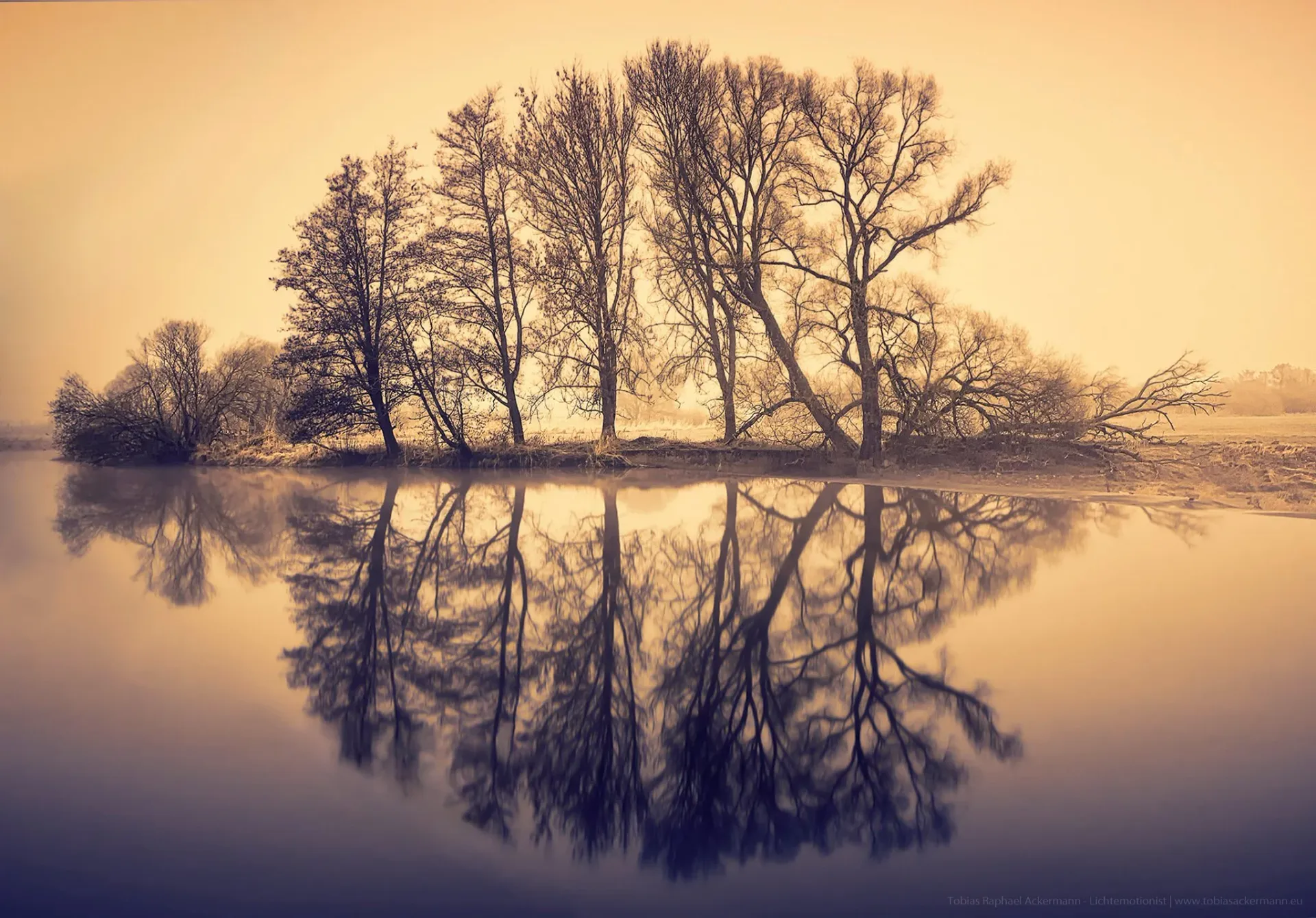 Die Bäume wurden nachgeschärft um diese klar vom Hintergrund und dem glatten Wasser abzugrenzen, der Himmel und das Wasser dagegen wurden mit „Rauschen reduzieren“ zusätzlich geglättet, damit alles schön weich aussieht. Ich finde, das ganze Bild hinterlässt einen nostalgischen Eindruck und strahlt Ruhe aus.